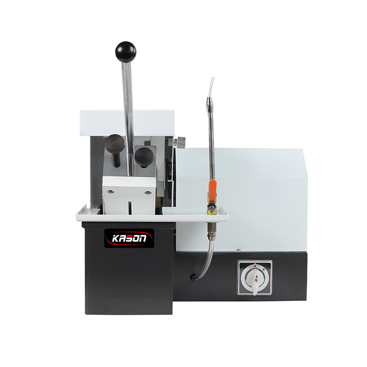 ● کاٹنے والی مشین نمونے کو کاٹنے کے لیے تیز رفتار گھومنے والی پتلی مضبوط پیسنے والی وہیل کا استعمال کرتی ہے۔